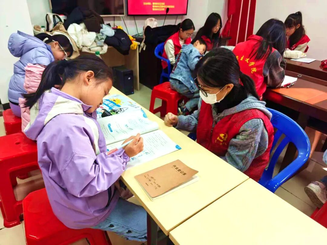 学业支持是本次活动的基础环节。活动期间,小队每日上午开设固定自习辅导时段,队员分组值守,为青少年提供一对一学业答疑,细致讲解作业难题、知识点盲区与科学学习方法,同步关注学习状态,对存在浮躁、焦虑情绪的学生及时疏导。针对共性问题开展集中讲解,有效帮助学生缓解学习压力、提升自主学习效率,筑牢学习基础。